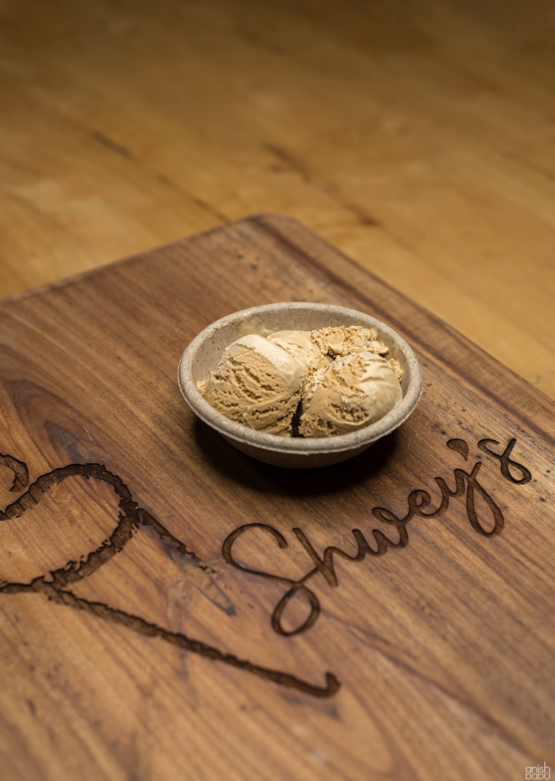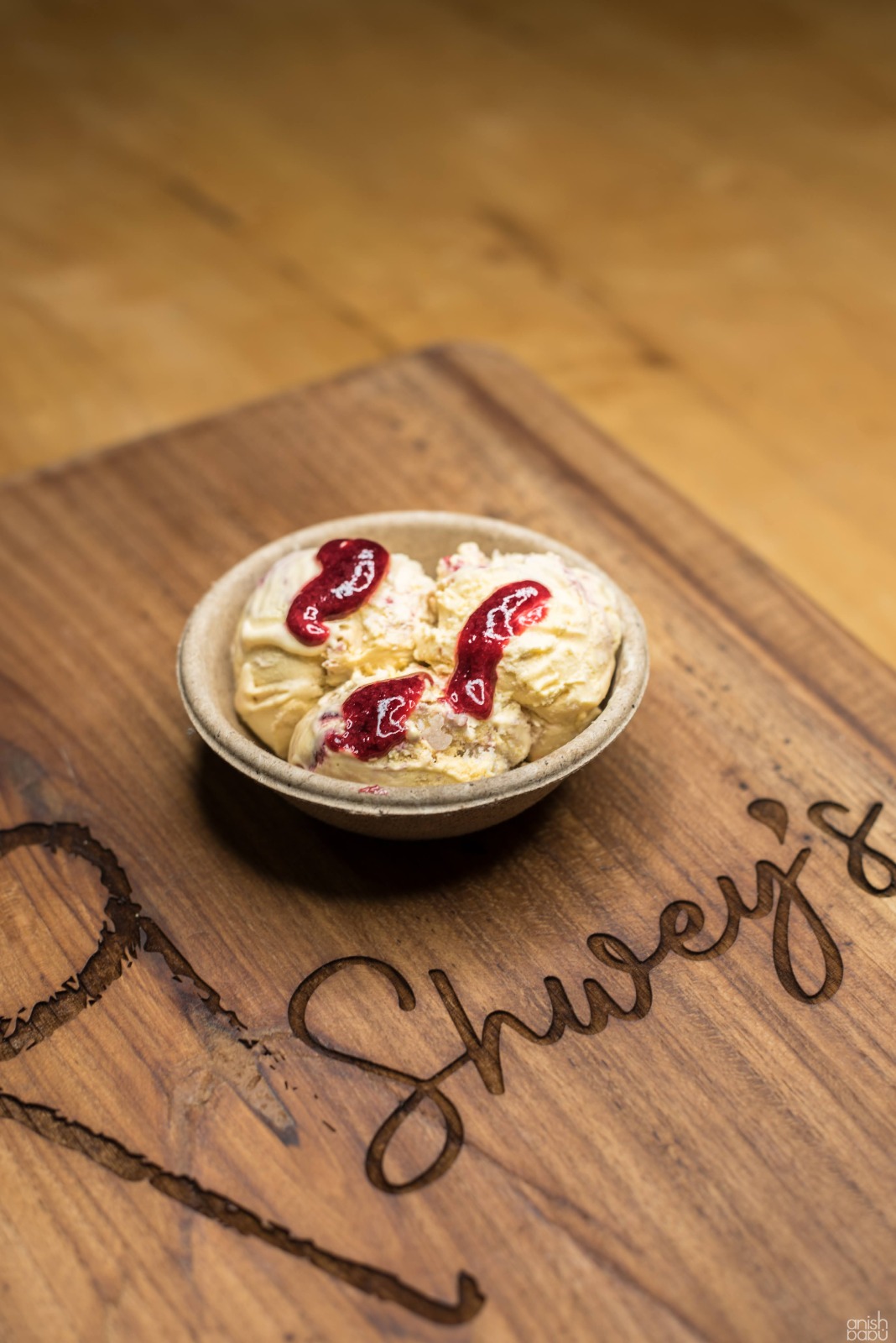 Sweet Alphonso mango ice cream with fiery bits of jalapeno
